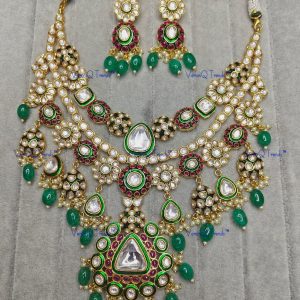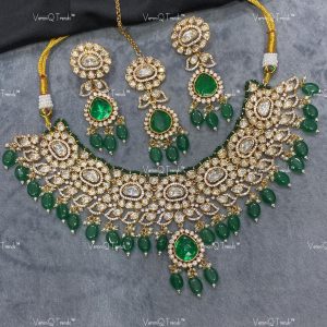 VeroniQ Trends-Designer Bridal Polki Princess Necklace with Emeralds-Kundan Necklace-Ahmedabadi Kundan-Wedding Jewelry-AG