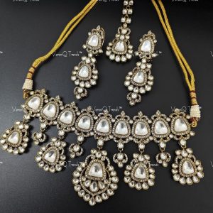 VeroniQ Trends-Traditional Gold Plated Heavy Polki Choker Necklace Polki-Gold Plated-Wedding Jewelry-Punjabi Jewelry-South Indian-Thappa Jewelry