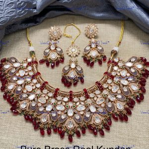 Rated 5.00 out of 5₹ 32,000.00₹ 27,500.00Each piece of VeroniQ Trends jewellery is expertly crafted and loving hand-finished by VeroniQ Trends talented crafts people, who bring the jewellery to life with meticulous attention to detail, skilfully setting sparkling stones or applying colourful enamel by hand. The material used to create VeroniQ Trends Jewellery are of highest quality and each hand finished piece goes through a vigorous quality control process to ensure it lives up to impressive standards that define VeroniQ Trends. It is advisable to avoid contact with water and organic chemicals i.e. perfume sprays. Store jewellery in airtight box. After use, wipe the jewellery with soft cotton cloth. Necklace with drawstring closure Earrings with push-back closures. Package contents - Necklace , Earrings,Tika -
