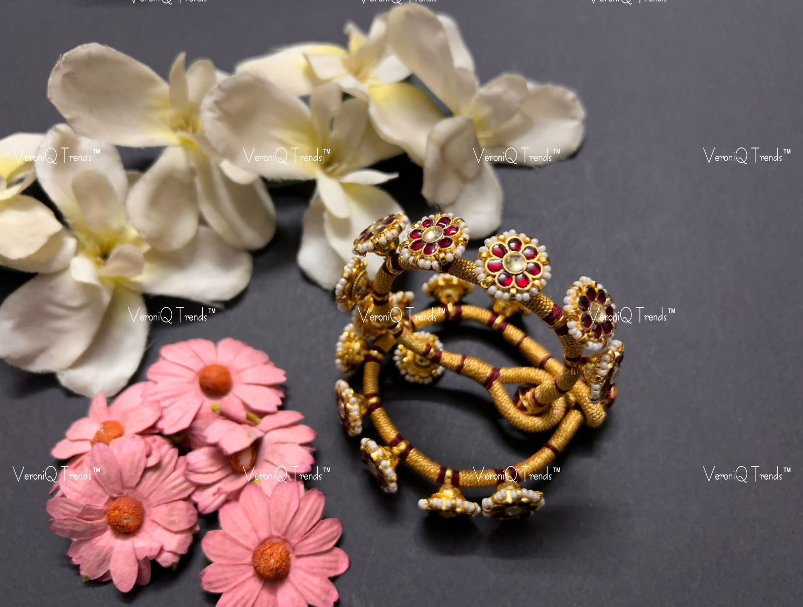 All our jewelry is handcrafted and therefore variations may occur. This bangles is handcrafted in Brass with gold plating, studded with Pachi Kundan Stones Setting.