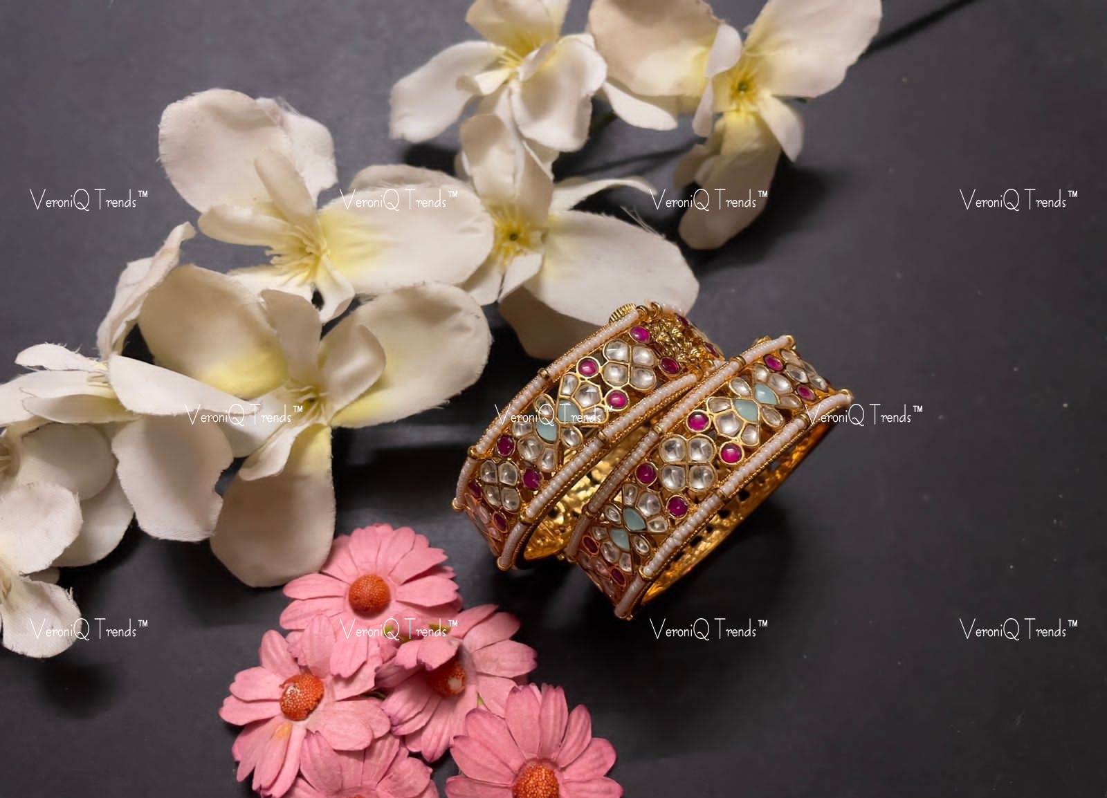 VeroniQ Trends-Gold Plated Pachi Kundan Kemp Stone Bangles Pachi Kundan-Gold Plated-Wedding Jewelry-Punjabi Jewelry-South Indian-Thappa Jewelry