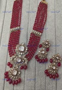 Note- For Mala please drop us a message or what’s app us if you want in pearl or in beads. It will be customized as per your choice at an additional cost depending on the choice of beads and pearls that you select Design can be customized for earrings and even in necklace ( please drop a message on 91-9549901009 for any customization)