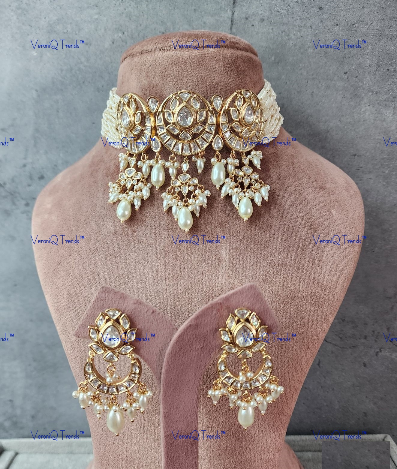 VeroniQ Trends-Multistrand Chandbali Design Gold Plated Polki Choker Necklace Polki-Gold Plated-Wedding Jewelry-Punjabi Jewelry-South Indian-Thappa Jewelry