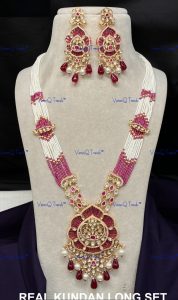 Note- For Mala please drop us a message or what’s app us if you want in pearl or in beads. It will be customized as per your choice at an additional cost depending on the choice of beads and pearls that you select Design can be customized for earrings and even in necklace ( please drop a message on 91-9549901009 for any customization)
