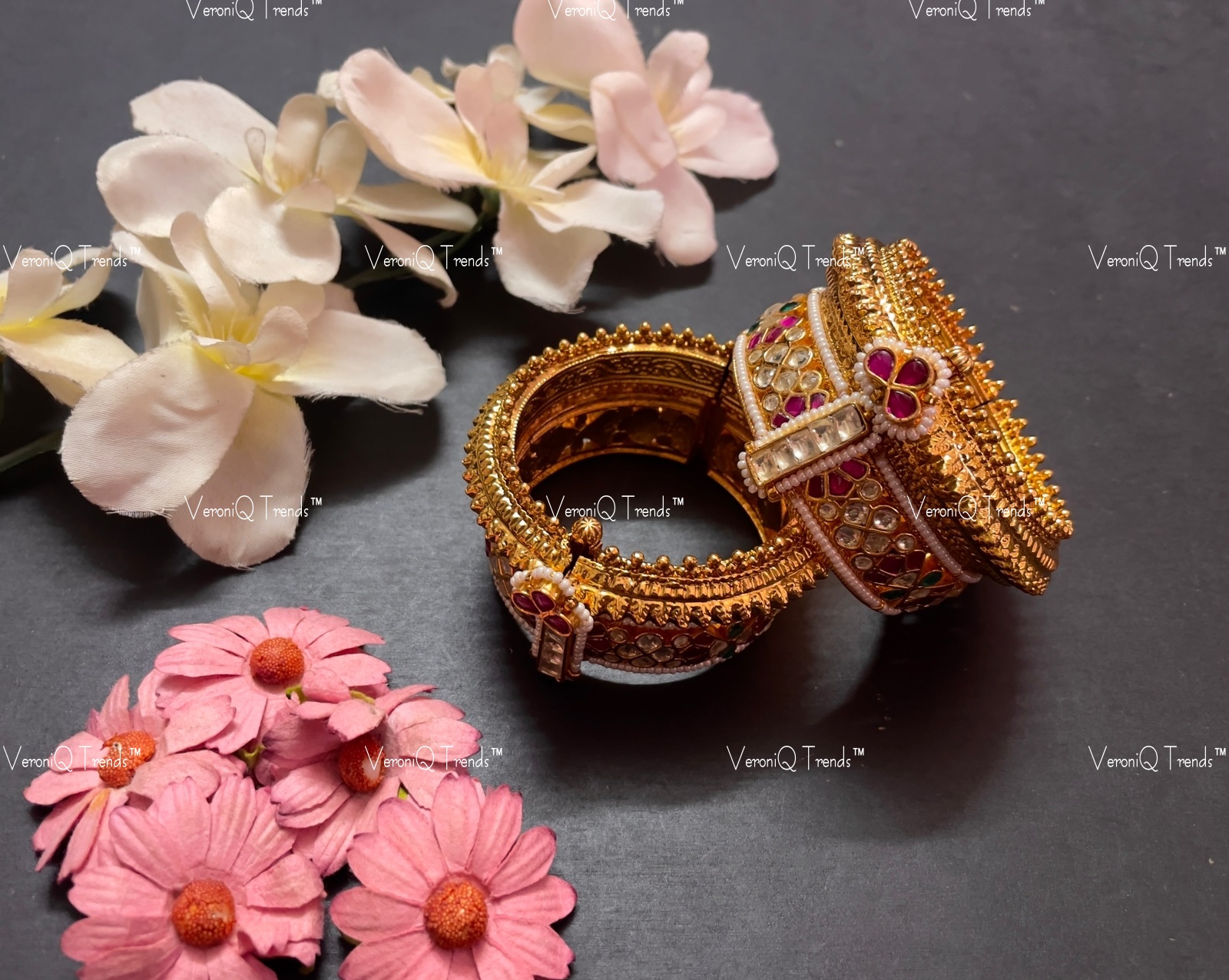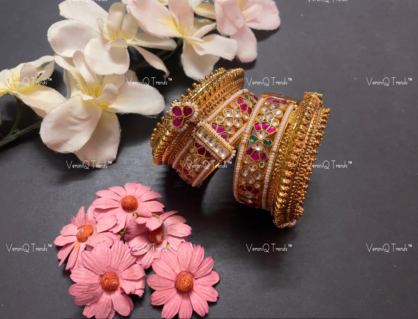 This statement bangles features a beautiful composition of Brass Metal with Pachi Kundan.