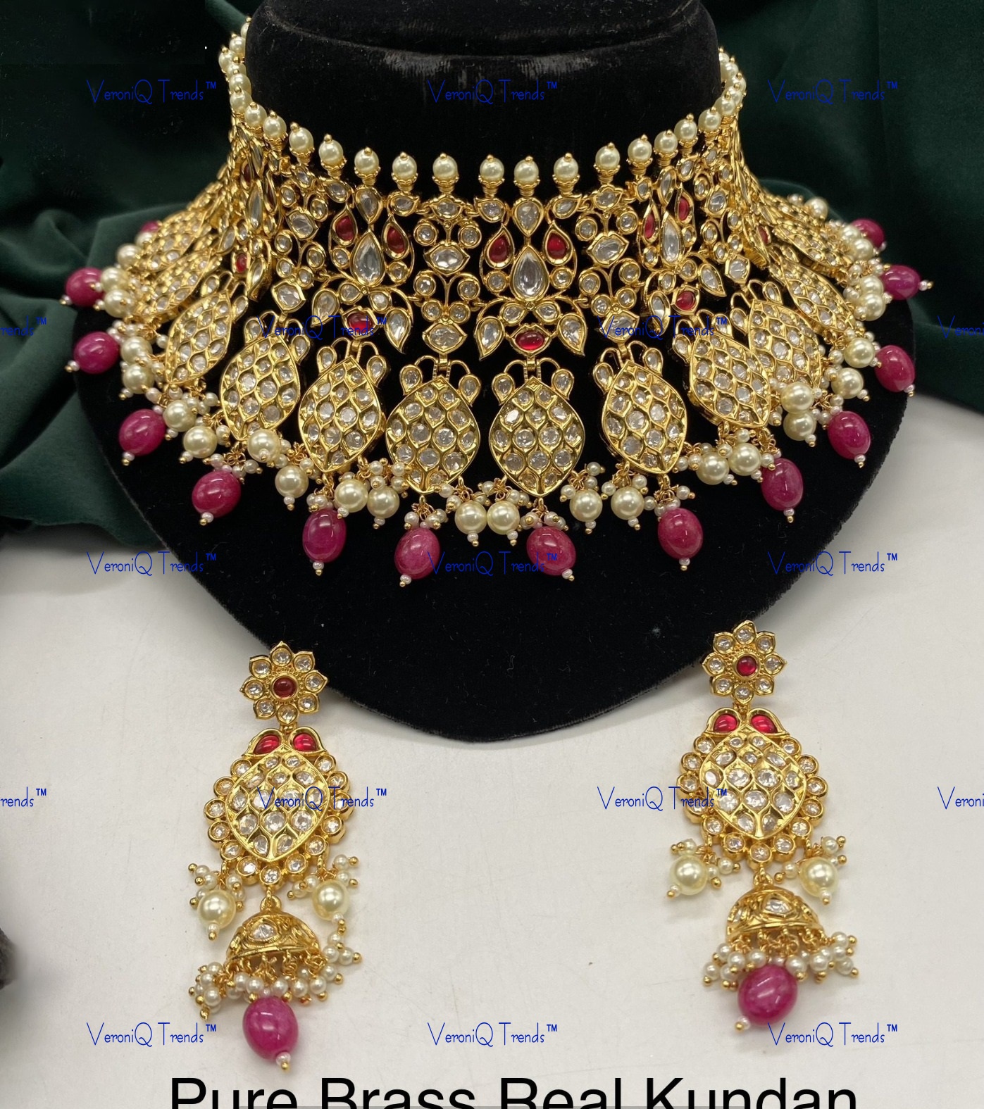 Be the first to review “VeroniQ Trends-Royal Bridal Gold Plated Kundan Polki Choker Necklace With Ruby Pink Beads Polki-Gold Plated-Wedding Jewelry-Punjabi Jewelry-South Indian-Thappa Jewelry”