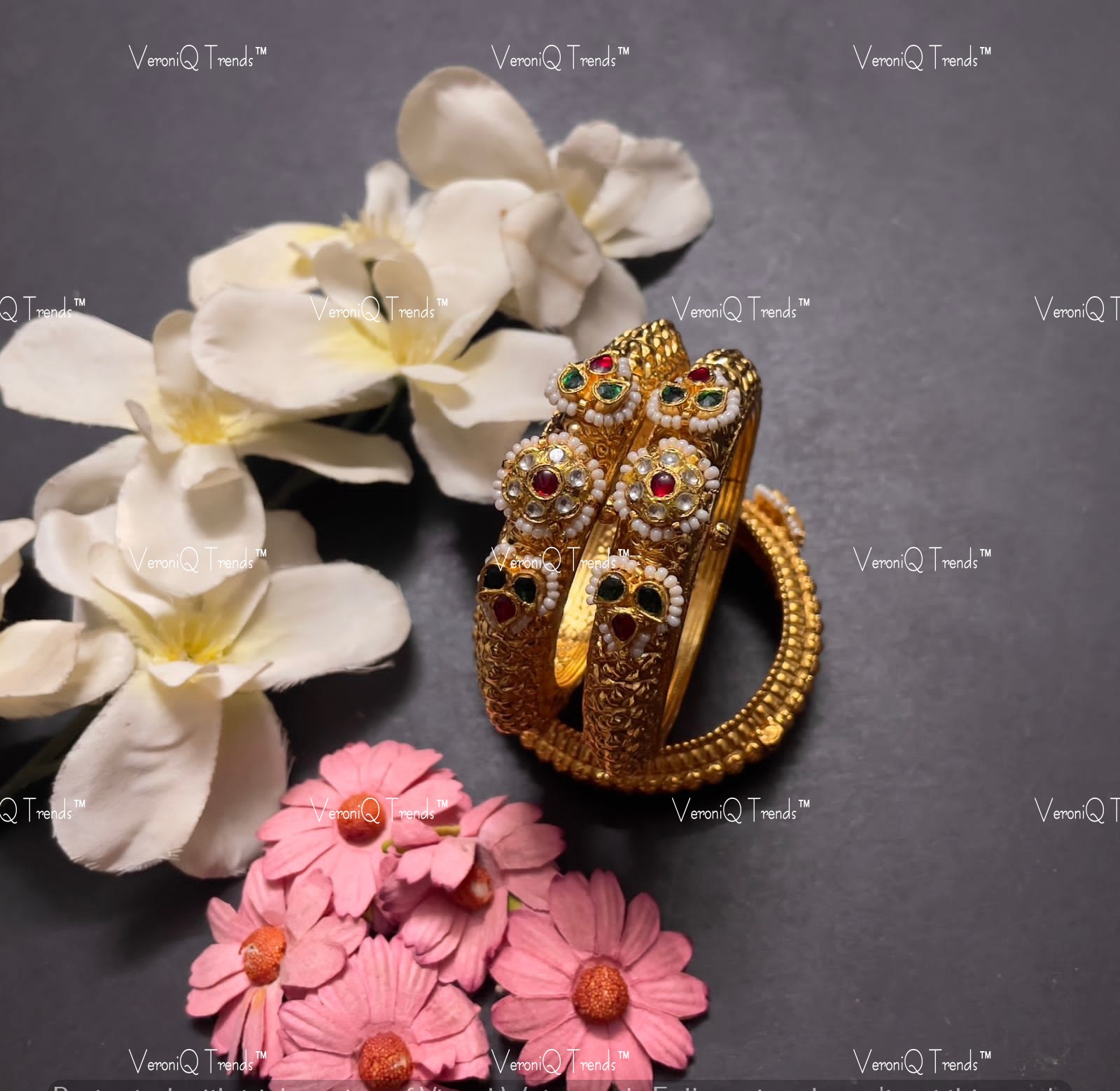 This statement bangles features a beautiful composition of Brass Metal with Pachi Kundan.