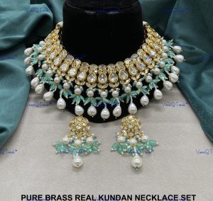Polki is a popular bridal jewelry characterized by a shiny appearance than Kundan. It is made of uncut/unfinished diamonds that is slightly polished without any further lab or chemical treatments or craftsmanship. For this reason, Polki is more expensive than Kundan and other families use it as heirlooms. But it is less expensive than the diamond and as thus many people who cannot afford to have diamond opt for the Polki jewelry.