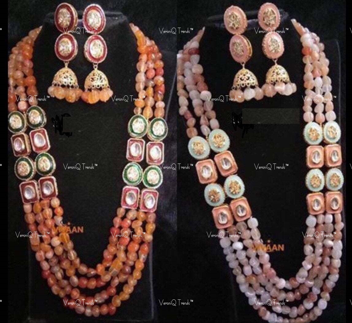 Note- For Mala please drop us a message or what’s app us if you want in pearl or in beads. It will be customized as per your choice at an additional cost depending on the choice of beads and pearls that you select Design can be customized for earrings and even in necklace ( please drop a message on 91-9549901009 for any customization)