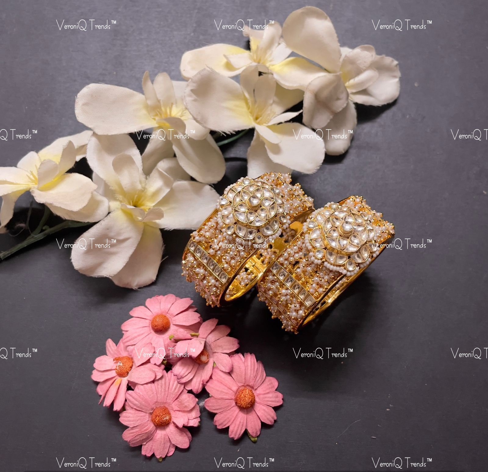 VeroniQ Trends-Traditional Kundan Jadau Gold Plated Pachi Kundan Bangles Kundan-Gold Plated-Wedding Jewelry-Punjabi Jewelry-South Indian-Thappa Jewelry