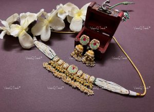 Note- For Mala please drop us a message or what’s app us if you want in pearl or in beads. It will be customized as per your choice at an additional cost depending on the choice of beads and pearls that you select Design can be customized for earrings and even in necklace ( please drop a message on 91-9549901009 for any customization)