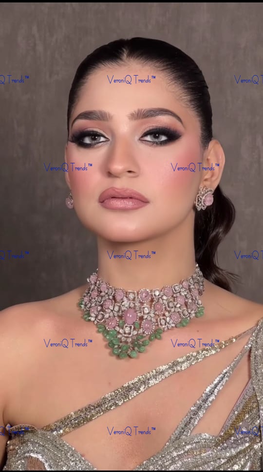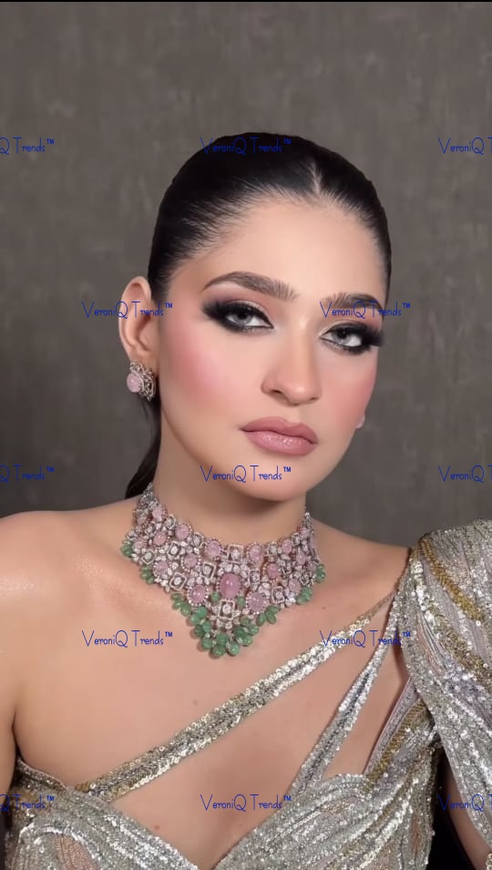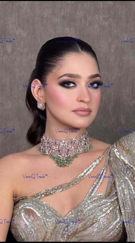 All our jewelry is handcrafted and therefore variations may occur. This necklace is handcrafted in silver with gold plating, studded with Moissanite Polki Stones Setting with AAA+ CZ Stone.
