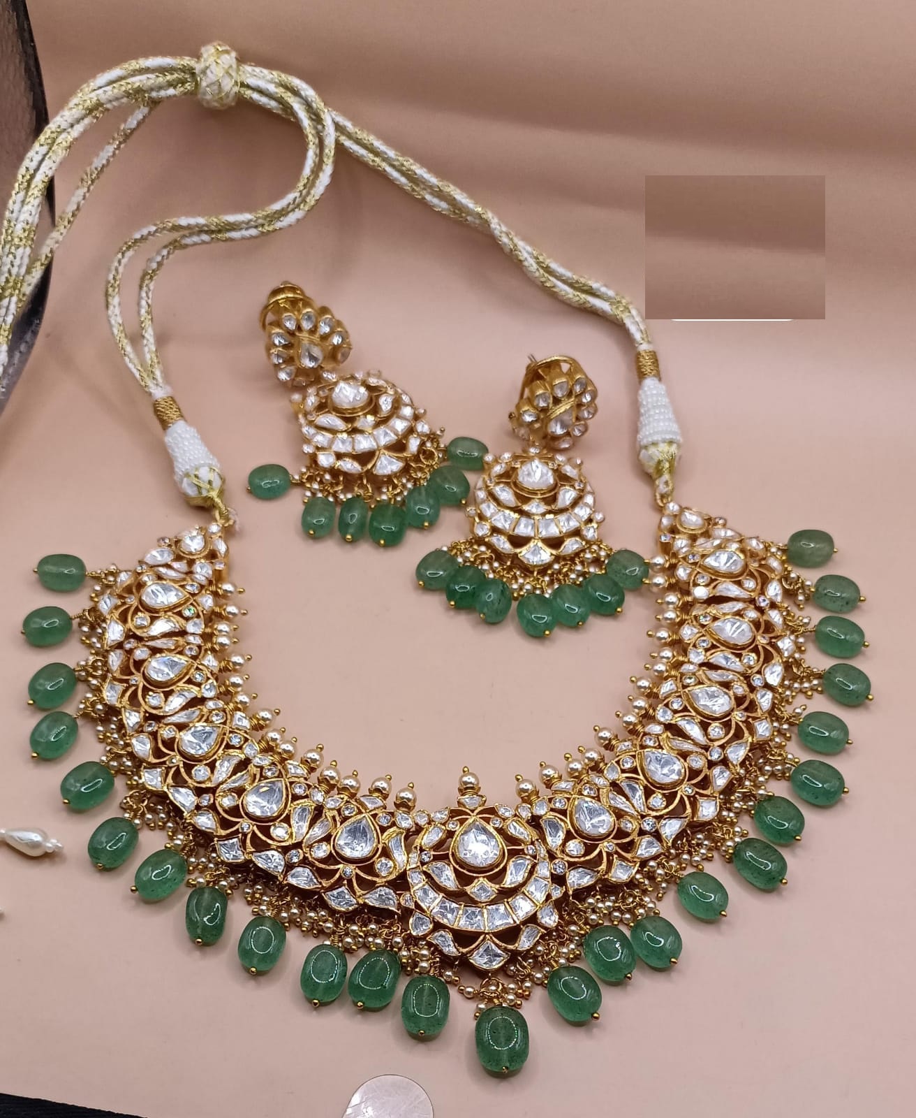 Note- For Mala please drop us a message or what’s app us if you want in pearl or in beads. It will be customized as per your choice at an additional cost depending on the choice of beads and pearls that you select Design can be customized for earrings and even in necklace ( please drop a message on 91-9549901009 for any customization)