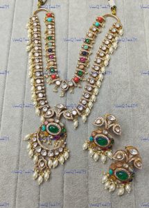 Note- For Mala please drop us a message or what’s app us if you want in pearl or in beads. It will be customized as per your choice at an additional cost depending on the choice of beads and pearls that you select Design can be customized for earrings and even in necklace ( please drop a message on 91-9549901009 for any customization)