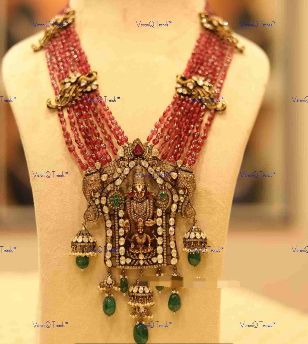 All our jewelry is handcrafted and therefore variations may occur. This necklace is handcrafted in silver with gold plating, studded with Moissanite Polki Stones Setting with Ruby Pink Quartz Beads, Strawberry Quartz and AAA+ quality CZ Stone.