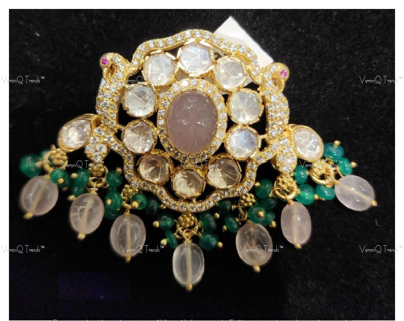 Be the first to review “VeroniQ Trends-Victorian Peacock Design Polki Silver Pendant With Light Pink Beads 92.5 Silver Moissanite Diamond Polki-Gold Plated-Wedding Jewelry-Punjabi Jewelry-South Indian-Thappa Jewelry”