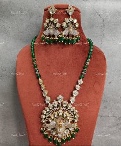 Note- For Mala please drop us a message or what’s app us if you want in pearl or in beads. It will be customized as per your choice at an additional cost depending on the choice of beads and pearls that you select Design can be customized for earrings and even in necklace ( please drop a message on 91-9549901009 for any customization)